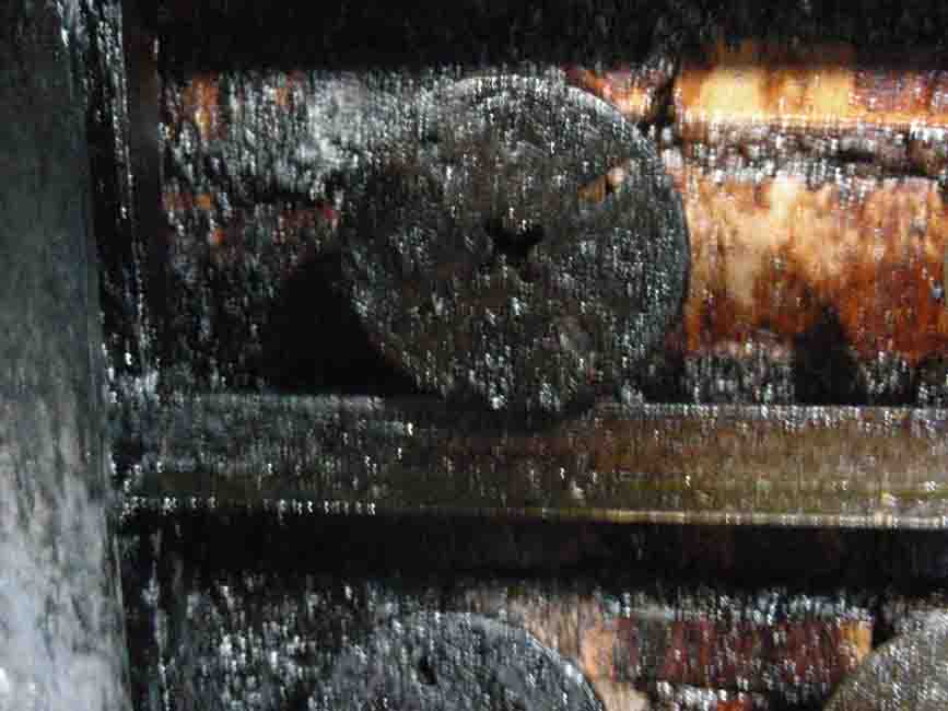 清洗前的烤爐 拆卸下來準(zhǔn)備清洗的轉(zhuǎn)輪 這樣的轉(zhuǎn)輪是火災(zāi)的隱患